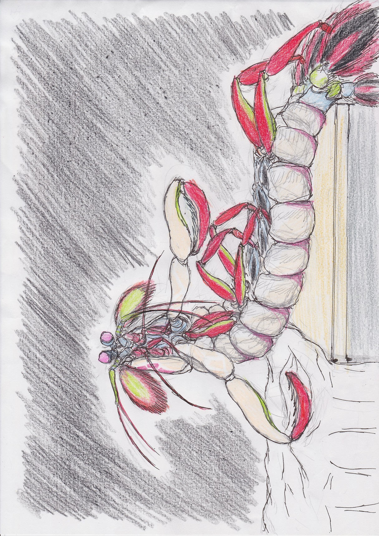 まずは1位 「poison cake」2位 「狼鬼」3位 「無職とメカニック」上位3位は上の絵なんですがやたらと漫研部員に受けの良かった絵がこちら 「シャコ」何がやばいってこの回のお題創作キャラなんですよ作者本人曰く「シャコの擬人化」らしいんですけど擬人化してねえだろって独特のセンスを持つ期待の新入部員の作品です、彼のシャコに惹かれた方は芸術家の感性をお持ちかもしれないあ、その他も一応載せときますね